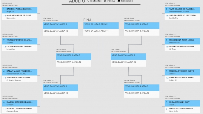 No shock, Gabi Pessanha is the one seed and heavy favorite. After her first round match, she might have an early rematch with former open class champion Tayane Porfirio - how's that for a quarterfinal? After that is likely the winner of the large Isa Lemos and the pressure-based Sábatha Lais. On the far side of the bracket, there's a lot of fun black belts that will have some really fun battles. Yara Soares - who will be at heavyweight - may still see Pessanha if she makes the finals but Mel Cueto and Lis Clay are both major factors as well.