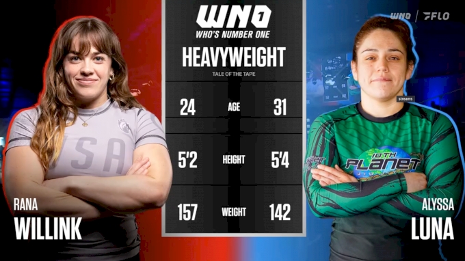 Alyssa Luna (10th Planet) takes on Rana Willink (Victory MMA & Legion AJJ) in a heavyweight bout next.