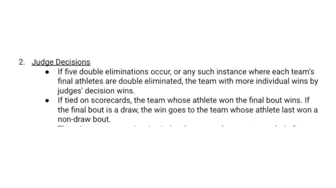 This meant that B-Team had the last win, but New Wave had won more matches overall. The rulebook established that the tiebreaking criteria would as follows;